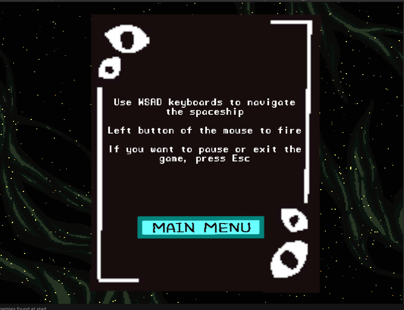 Modifications: A 2D shooter game with 3 levels and the main menu using all original character designs (the player and enemies). Different backgrounds and background music for each level. Hand-written fonts. Added basic information to the instructions page.